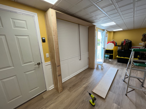 A month or so after, we had some time to come back and began working on 3 new things. Putting panels on the other sides of the walls to cover the insulation, Customizing her new closet, and adding what is essentially an "open mud room" to a section of the wall.