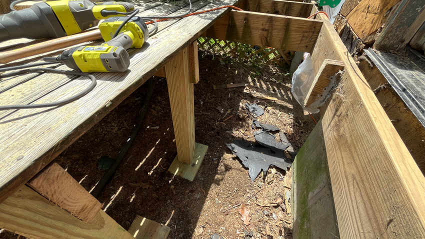 To get to the siding, shiplap, bands, and sill plates - we had to first remove the ledger and floor joists to the front and back decks. Then do some serious patch work as we removed all rotted wood and replaced it with new materials. In the end we put new siding back up with a much more modern approach to sealing off the house.