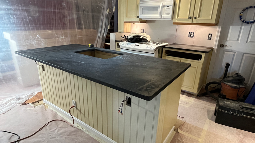 Here is a project we finished recently for some clients who live out of town and wanted us to wait until winter to do the project while they are gone. The kitchen had elements to it that were pretty dated and the client wanted to remove all of the tile from the counter to the backsplash. Then she wanted us to take a section of the pony wall out to create an island in the kitchen! It ended up looking great!